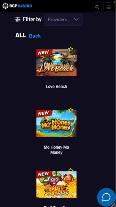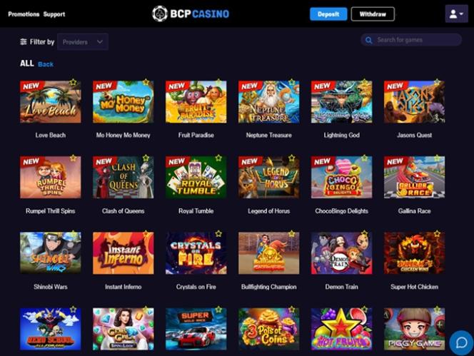 该品牌提供的在线赌场游戏由Eurasian Gaming、Reevo、Qora Gaming、Dragon Gaming 和 Popiplay等软件供应商设计。这些开发商提供种类丰富的游戏,涵盖大多数热门赌场类别。