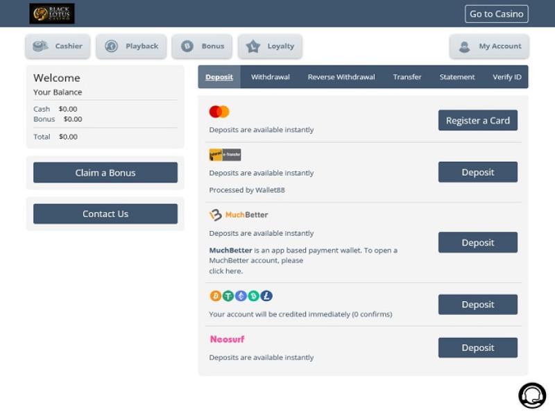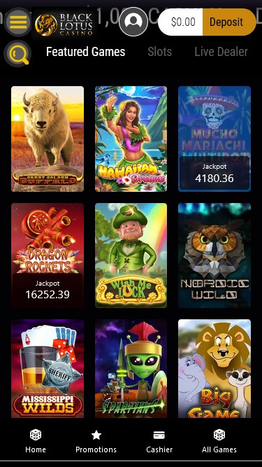 Black Lotus 赌场由 Microgaming, Net Entertainment, BetSoft, Amatic Industries, Espresso Games, Rival, Saucify, Vivo Gaming, Endorphina, GameArt, Betgames, Booongo, Felix Gaming, Red Rake Gaming, Inbet Games, Fugaso, Belatra Games, Kalamba, Platipus Gaming, Nucleus Gaming, Spinmatic, Spadegaming, BGAMING, Fazi, Evoplay, SA Gaming, OneTouch, Pocket Games Soft, Triple PG, Mascot Gaming, TVBet, NetGame Entertainment, TrueLab Games, Mancala Gaming, 7Mojos, SmartSoft Gaming, KA Gaming, Atmosfera, Caleta Gaming, Amusnet Interactive, Tom Horn Gaming, Genii, Mr Slotty, Apollo Games, NetGaming, PlayStar, Vibra Gaming, Gamzix, Triple Cherry, Dragon Gaming, Amigo Gaming and Funky Games提供支持,其游戏通过基于网页的即时游戏平台提供,可通过您常用的浏览器直接加载。该赌场还全面支持移动端游戏,您可以在智能手机或平板电脑上畅玩。