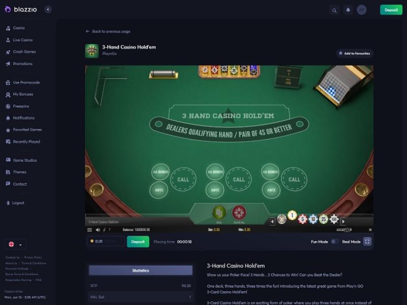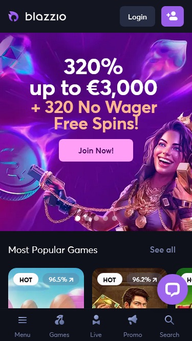 对于那些对老虎机游戏不感兴趣的玩家,Blazzio 的运营商确保他们在玩轮盘赌、二十一点和百家乐等桌面游戏时也能享受乐趣。如果他们愿意,还可以选择与真人荷官一起玩这些类型的游戏。