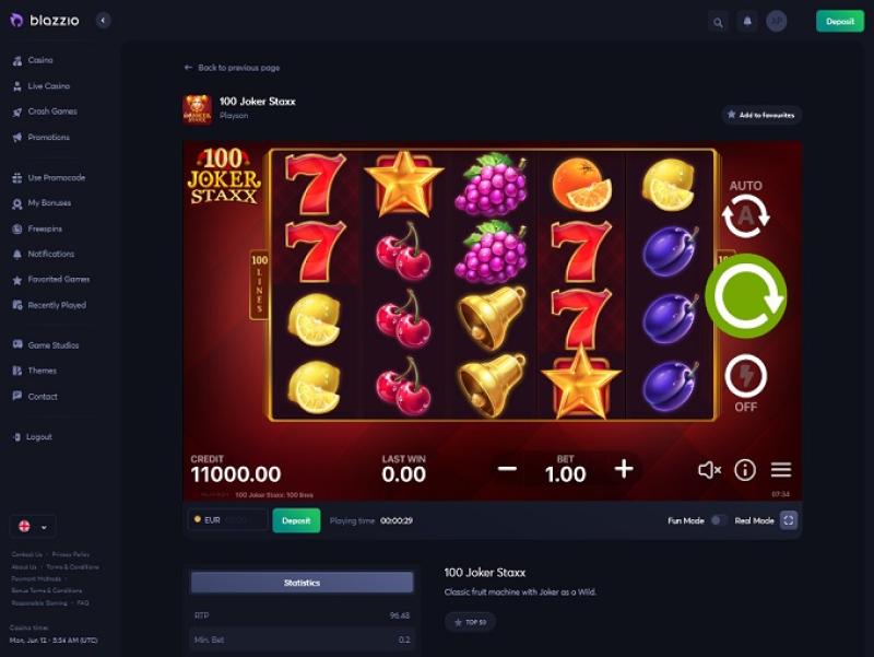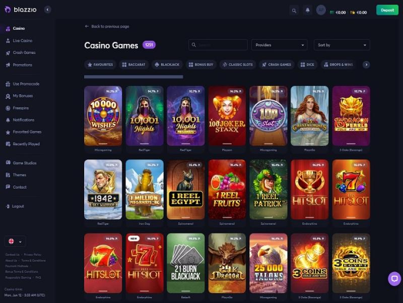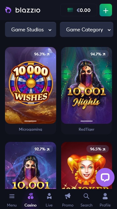 正因如此,Blazzio Casino 才拥有业内顶尖的游戏平台。其中最受欢迎的包括 Play 'N Go、Elk Studios、Micro Gaming、Belatra Games、Betsoft、 Pragmatic Play 、Evoplay、Endorphina 等等。