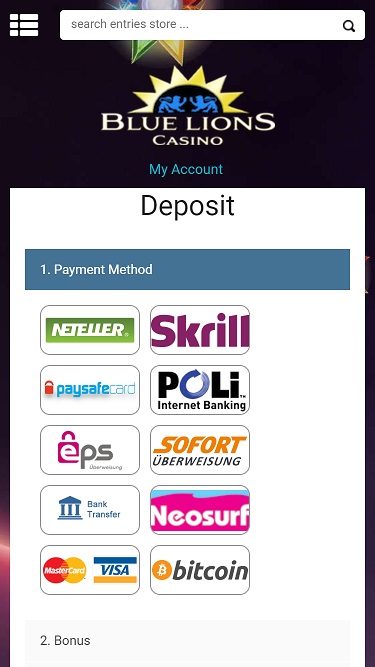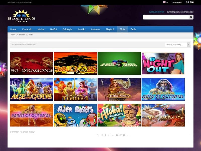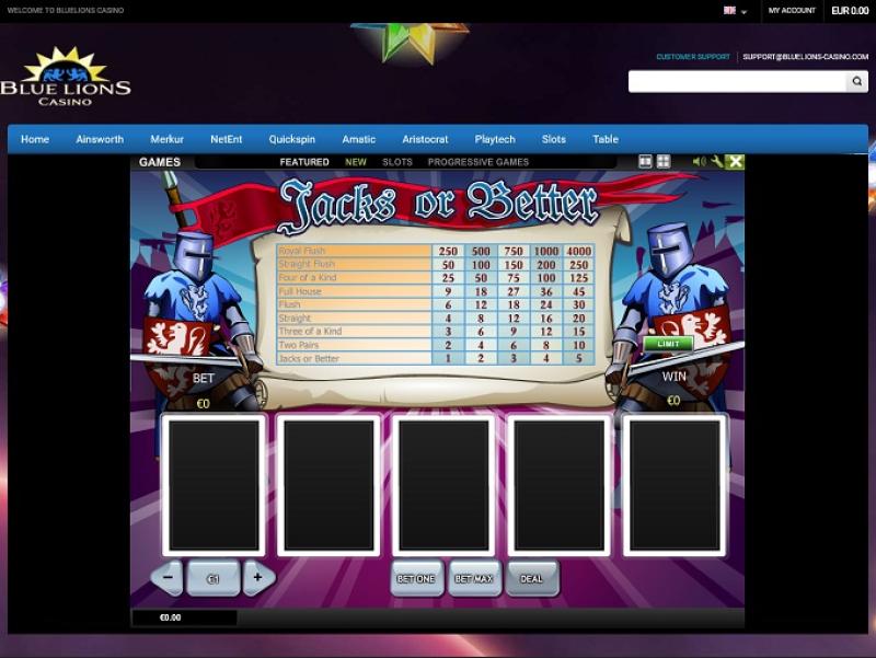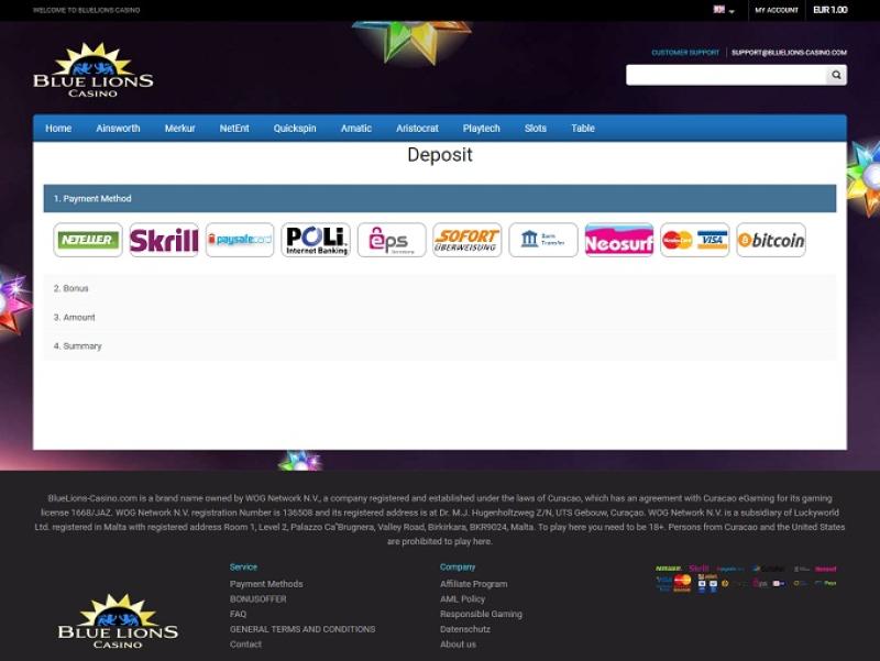 BlueLions Casino 由 Net Entertainment, Playtech, Amatic Industries, Quickspin, Ainsworth, Aristocrat and Merkur Gaming提供支持,其游戏通过即时播放平台提供。