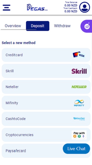 BluVegas 赌场的玩家可以选择使用加密货币作为主要银行业务方式。他们也可以选择使用流行的传统支付方式,例如 Mastercard、Visa、 Neteller 、Skrill、Paysafecard、Rapid 和 Tether。这里为玩家提供了丰富的选择,这对运营商来说非常重要。通过提供尽可能多的支付方式,更多玩家将能够享受到赌场的乐趣。
