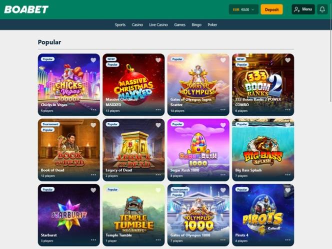 BoaBet是一家功能齐全的在线赌场,尤其注重其丰富的游戏种类,包括在线老虎机、真人荷官游戏、桌面游戏、宾果游戏、基诺游戏和刮刮卡,以及众多体育博彩选项。该网站面向泰国、越南、匈牙利、挪威、克罗地亚和加拿大的玩家开放,诚邀他们畅玩所有游戏,并享受丰厚的促销活动和奖金。