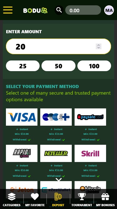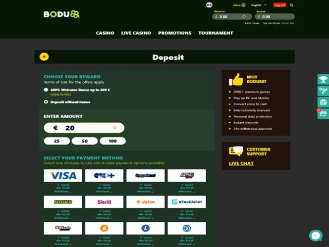 Bodu88 是一个对比特币友好的品牌,但这并不意味着该博彩场所只接受加密货币。它还提供许多其他银行服务,例如银行电汇、支付卡和值得信赖的电子钱包。