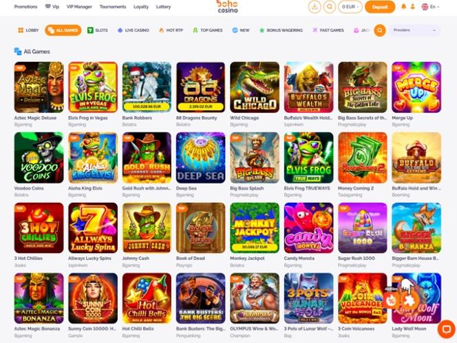 为了向赌客提供最好的赌场内容,BOHO 赌场与 SoftSwiss、Booming Games、Habanero、 Kalamba Games等软件提供商合作。