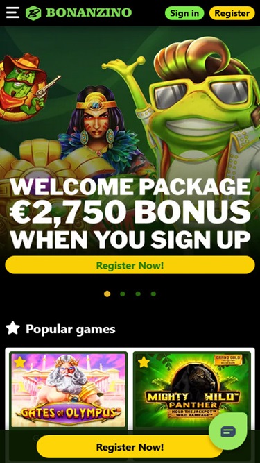 进入 Bonanzino 后,玩家首先会看到一个简约的主页,该主页不会试图用不必要的信息淹没玩家,而是立即向玩家显示一个可滚动的横幅,其中包含玩家可以领取和参与的最有利可图的促销活动。
