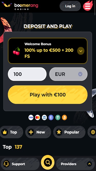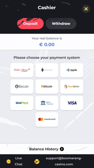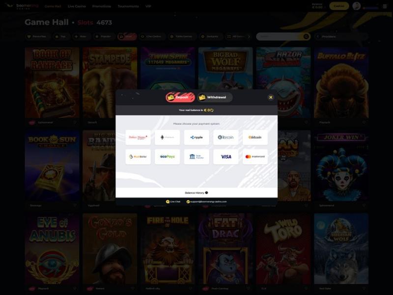 Boomerang 是一个对加密货币友好的在线赌场,还提供其他支付方式,例如支付卡、电子钱包和银行电汇交易。
