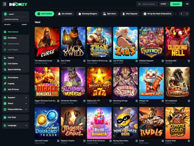 Boomzy Casino拥有数千种令人兴奋的游戏,由一些备受尊敬的 iGaming 行业巨头提供,例如 Evolution Gaming、 Relax Gaming 、Nolimit City、Endorphina、Hacksaw Gaming 和 Pragmatic Play 等等。