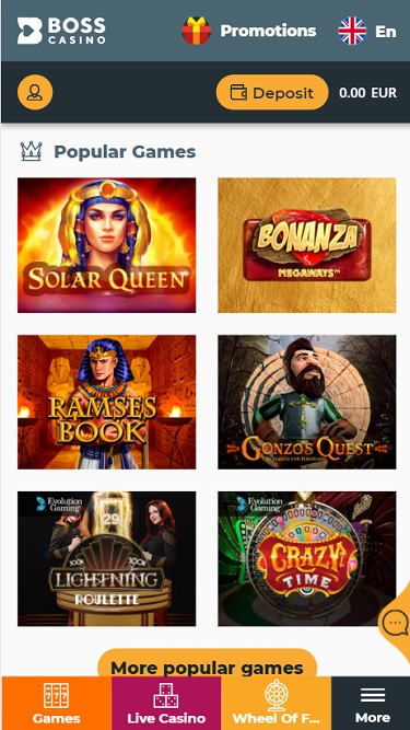 Boss Casino 由 Microgaming, Net Entertainment, Big Time Gaming, Evolution Gaming, Ezugi, playson, Wazdan, Betgames, Booming Games, Pragmatic Play, All41 Studios, Gameburger Studios, Games Global, Wizard Games, Pariplay, Gamomat, Ganapati, Just For The Win, Golden Hero, Hacksaw Gaming and Peter And Sons提供支持,其游戏通过基于网页的即时游戏平台提供,您可以通过电脑的互联网浏览器注册、存款和玩游戏。该平台也支持移动游戏,玩家可以通过智能手机或平板电脑访问游戏。