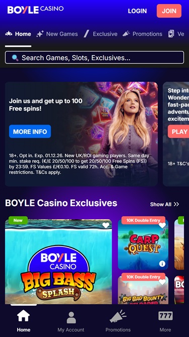 “Boyle”这个名字及其在在线游戏行业的参与可以追溯到20世纪80年代,但于2002年正式成立为一家在线赌场。它由Boyle Sports拥有和运营,提供丰富的游戏选择,包括老虎机、视频扑克和桌面游戏。它是公认的最大的Playtech赌场之一,并已扩展提供宾果游戏和扑克游戏。