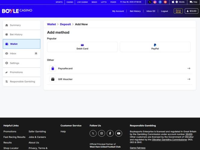 BoyleSports 完全英国赌场不允许玩家来⾃ Ohio