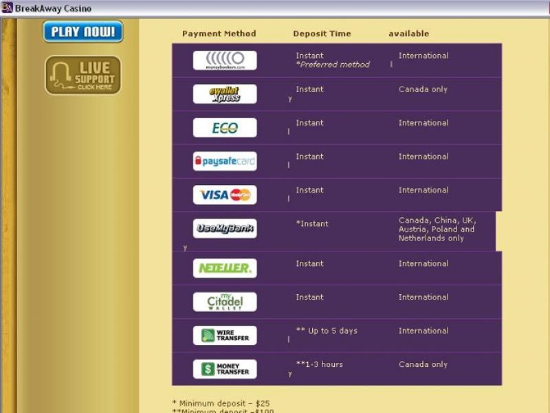 Break Away Casino 是一家在线博彩网站,最初于 2002 年开业。该赌场由挪威的 Playsafe Holding AS 拥有和运营,多年来因其拖延支付奖金、不支付奖金以及违反联盟合同而声名狼藉。因此,我们敦促玩家在 Break Away Casino 游戏时务必谨慎。赌场资讯