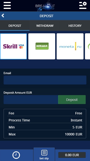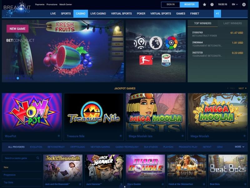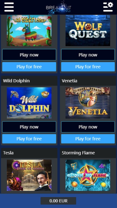 Breakout Gaming 由 Net Entertainment, 1x2gaming, ELK Studios, Evolution Gaming, iSoftBet, playson, Quickspin, WM, Endorphina, Wazdan, GameArt, Booming Games, BetConstruct, Pragmatic Play, ZEUS Services, Wizard Games, CT Interactive, NextGen, Pariplay, iGaming2go, Genii and Mr Slotty提供支持,其赌场游戏通过基于网页的即时游戏平台提供,可直接通过您的网络浏览器加载游戏。该赌场还支持移动端游戏,这意味着您可以在智能手机或平板电脑上畅玩。
