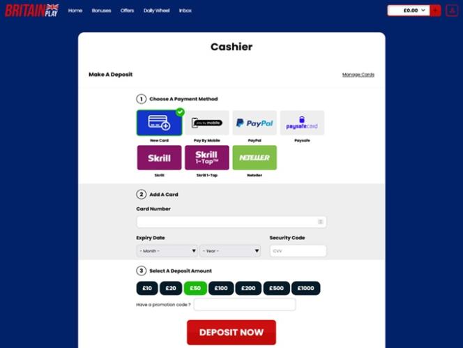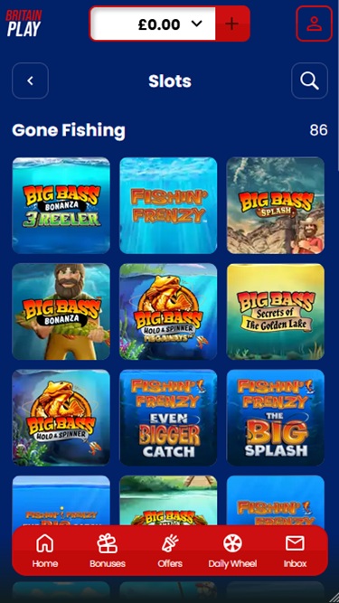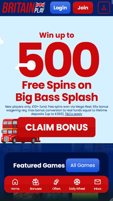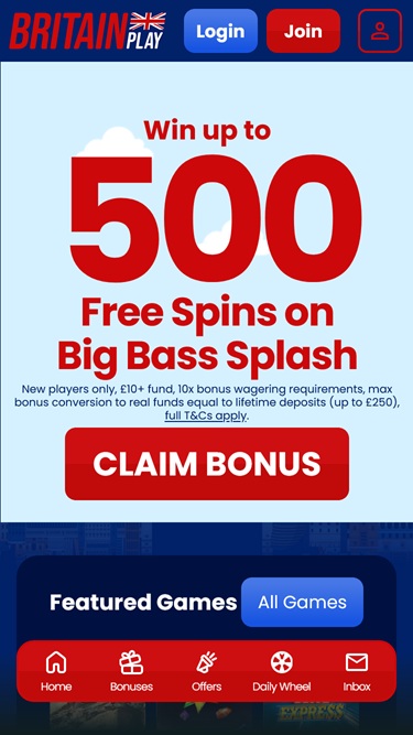 这家赌场拥有一个精美的赌博平台,其设计融入了一些著名的英国符号和元素,包括英国国旗及其配色图案。对于一个名叫BritainPlay的赌博品牌来说,这样的设计虽然美观,但可能略显突兀。值得一提的是,该运营商主要面向英国玩家。