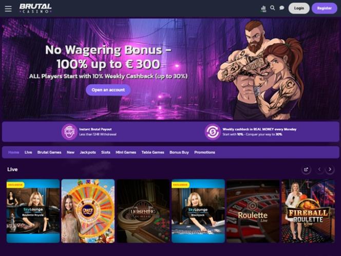 Brutal Casino 拥有丰富的游戏库,并提供丰厚的会员计划和优质的促销方案。乍一看,这是一个前景光明的在线博彩平台,我们很想更深入地探索它。