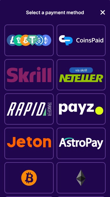 收银台支持多种付款方式。请注意,可用的付款方式因国家/地区而异,但无论其所在的博彩管辖区如何,我们都能提供足够的选择。