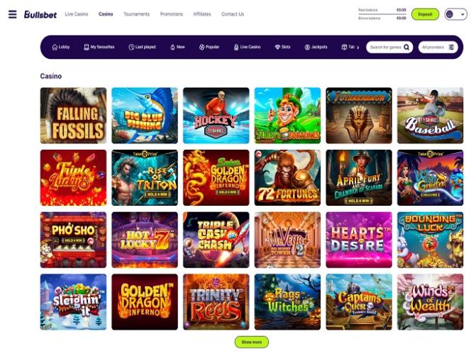 BullsBet Casino 与众多软件工作室合作,既有 iGaming 的先驱,也有专注于引入新机制、有趣奖励系统等的创新型开发者。玩家将能够浏览由 Evolution Gaming、Yggdrasil、Quickspin 等游戏供应商提供的内容……