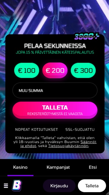 该赌场的座右铭是“随时随地畅玩 BUUMI”。无需过多解释;该网站针对所有设备(包括移动设备和桌面设备)进行了跨平台优化,所有可用的网站版本均能提供卓越的在线赌场体验。