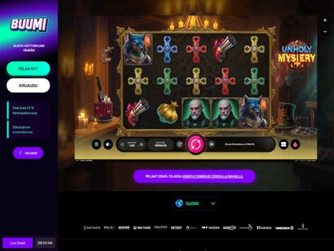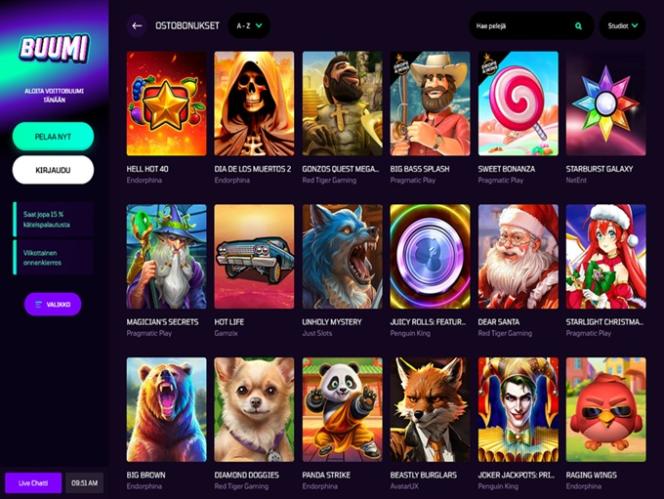 BUUMI 与许多顶级在线赌场软件开发商合作,并做出适当的游戏选择,为玩家提供令人印象深刻的游戏库大小和大量的在线赌场游戏类型,例如: