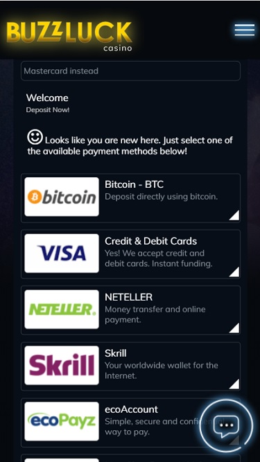 Buzzluck Casino 欢迎玩家来⾃ Ohio