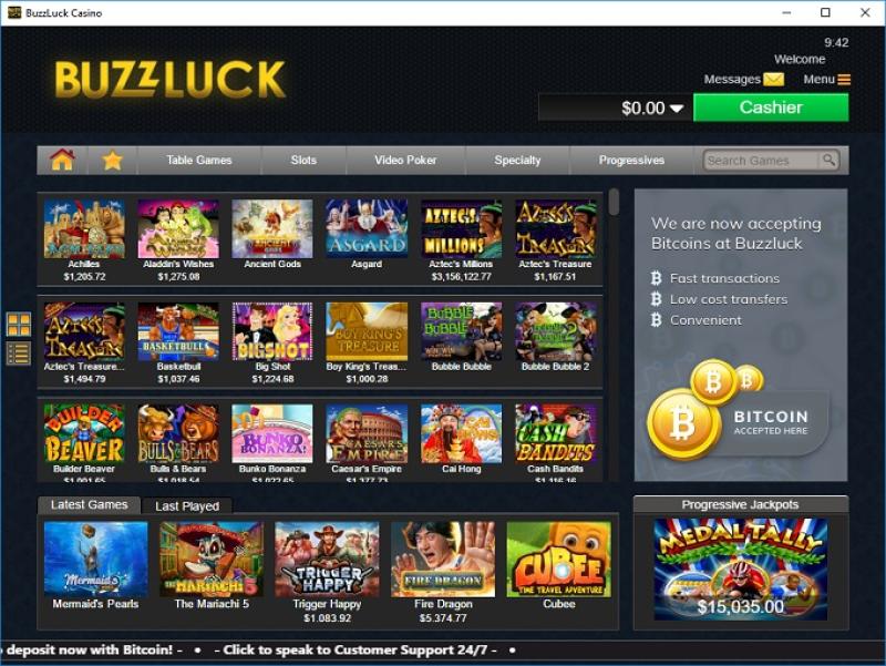 Buzzluck 赌场由 Real Time Gaming 旗下子公司 Real Time Gaming提供支持。由于即时游戏平台尚未开发,赌场游戏略有限制,玩家需要下载赌场软件才能玩。