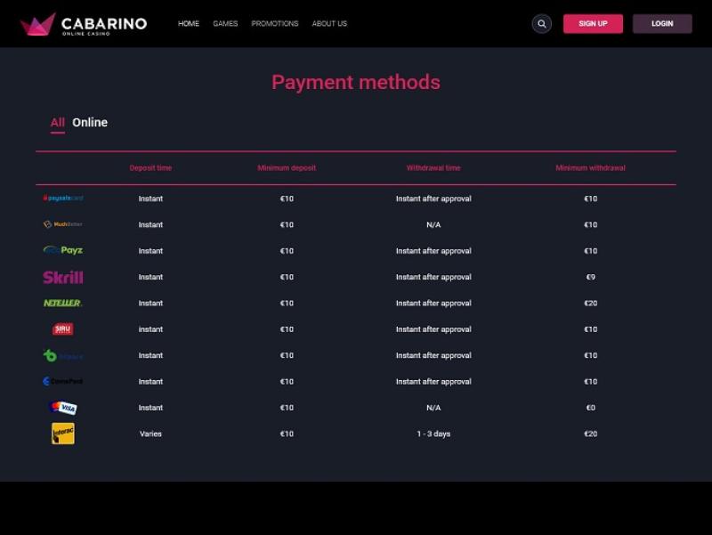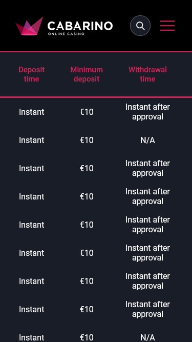 该网站响应迅速,这意味着无论设备屏幕尺寸或类型如何,玩家都能流畅地享受自己喜爱的内容。另一方面,值得一提的是,游戏缩略图内容需要进行优化以适应框架,因为很多情况下游戏标题并不清晰可见,应该放在更合适的位置。除此之外,Cabarino Casino 界面友好,优化程度也很高。