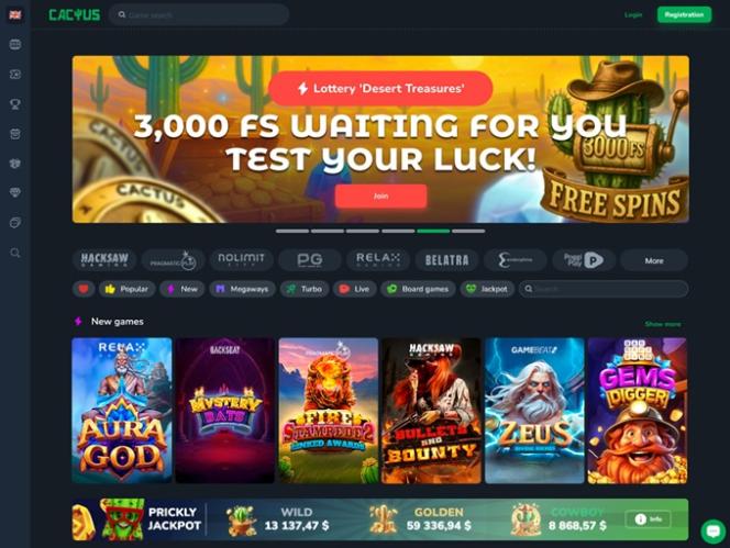 Cactus Casino 成立于 2025 年,是一个现代化的在线赌博平台,提供种类繁多的赌场游戏,包括真钱老虎机、真人荷官游戏、桌面游戏和即时崩溃游戏。该赌场接受来自加拿大、波兰和德国的玩家,提供丰富的游戏选项、促销活动、奖金和累积奖金,以及加密货币支持。