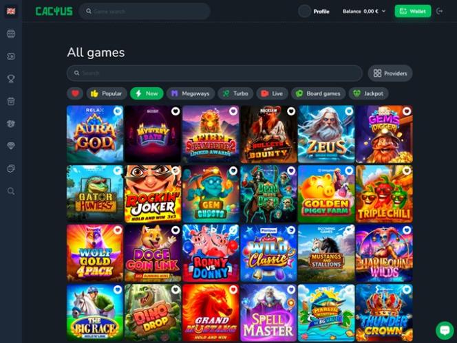 在 Cactus Casino,您可以畅享琳琅满目的赌场游戏和软件供应商。该博彩网站已获得超过 80 家独立软件开发商的授权,其中大多数均位列业内顶尖,并以只提供最高品质的游戏而闻名。