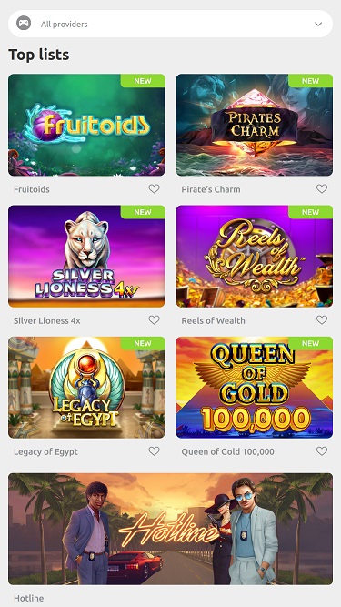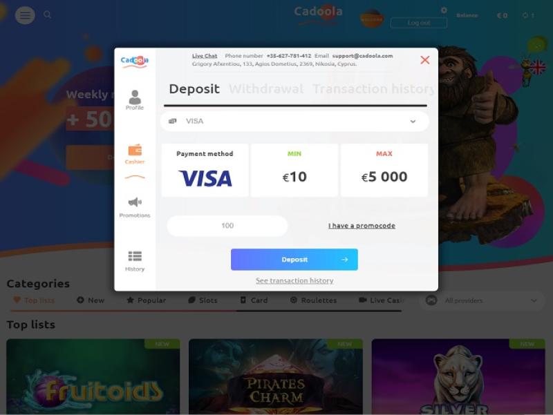 Cadoola 赌场由 Microgaming, Net Entertainment, Playtech, BetSoft, 1x2gaming, Amatic Industries, Big Time Gaming, ELK Studios, Evolution Gaming, Ezugi, Genesis Gaming, Habanero Systems, iSoftBet, Oryx, Play'n GO, playson, Quickspin, Relax Gaming, Yggdrasil, Endorphina, Wazdan, GameArt, Betgames, Booming Games, PlayPearls, Stakelogic, Pragmatic Play, Nolimit City, Felt Gaming, Red Tiger Gaming, Booongo, LuckyStreak, Spinomenal, Felix Gaming, Red Rake Gaming, Skillzzgaming, Fugaso, Belatra Games, Fantasma Games, SYNOT Games, Kalamba, Revolver Gaming, Spin Games, Platipus Gaming, Nucleus Gaming, Skywind, Spinmatic, Spadegaming, Triple Edge Studios, BGAMING, Northern Lights Gaming, Fazi, Evoplay, Stormcraft Studios, Switch Studios, OneTouch, Electric Elephant Games, Pocket Games Soft, Bulletproof Games, All41 Studios, Gluck Games, Mascot Gaming, NetGame Entertainment, Gameburger Studios, Pulse 8 Studios, Slot Factory, Neon Valley Studios, Golden Rock Studios, Spearhead Studios, Swintt, Woohoo Games, SpinPlay Games, HungryBear Gaming, Qora Games, SmartSoft Gaming, KA Gaming, Atmosfera, Real Dealer Studios, GONG Gaming, Blue Guru Games, Lady Luck Games, On Air Entertainment, Buck Stakes Entertainment, Caleta Gaming, Creedroomz, Eurasian Gaming, Games Global, Reevo, Amusnet Interactive, Wizard Games, Ash Gaming, bluberi, Blueprint Gaming, CT Interactive, EveryMatrix, Leander Games, Merkur Gaming, Pariplay, Push Gaming, Tom Horn Gaming, Gaming Realms, Cayetano, Gamomat, Mr Slotty, Reel Time Gaming, BF Games, Bally Wulff, Iron Dog Studio, Old Skool Studios, Foxium, Zitro, Just For The Win, Storm Gaming Technology, PearFiction Studios, Apollo Games, Wild Streak Gaming, Slingshot Studios, Golden Hero, Fortune Factory Studios, Jade Rabbit Gaming, RubyPlay, 4ThePlayer, AvatarUX, Gamevy, Crazy Tooth Studio, High 5 Games, Groove Gaming, ReelPlay, Japan Technicals Games, SlotVision, Alchemy Gaming, Rarestone Gaming, Vibra Gaming, BB Games, Black Pudding Games, Snowborn Games, Boomerang Studios, Hacksaw Gaming, Max Win Gaming, Gold Coin Studios, Bang Bang Games, Gamzix, Half Pixel Studios, Arcadem, Slotmill, SilverBack Gaming, Peter And Sons, Aurum Signature Studios, Charismatic, FastSpin, Armadillo Studios, Lucksome Gaming, Gamebeat, Playgon, Area Vegas, RAW iGaming, ELA Games, Bombay Live, Leap Gaming, Aviatrix, Kiron, 3 Oaks Gaming, Wishbone Games, Apparat Gaming, PopOK Gaming, Circular Arrow, Print Studios, Gaming Corps, HammerTime Games, BetSolutions, Four Leaf Gaming, INO Games, Nailed It! Games, Atomic Slot Lab, Neko Games, Reel Kingdom, Oros Gaming, Givme Games, JVL, Indigo Magic, Live88 and Zillion Games提供支持,其游戏通过基于网页的即时游戏平台提供。所有游戏均通过网站部署,无需下载任何繁琐的软件。赌场还支持移动端游戏,您可以在智能手机或平板电脑上畅玩。
