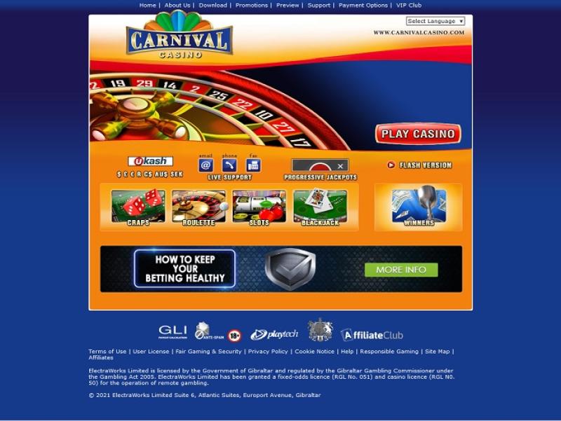 Carnival Casino 是一个以游乐园为主题的在线赌场网站,由 iGlobal Media Entertainment 拥有。玩家可以选择下载免费赌场软件或使用网站的即时游戏版本,所有游戏均由Playtech软件独家提供支持。