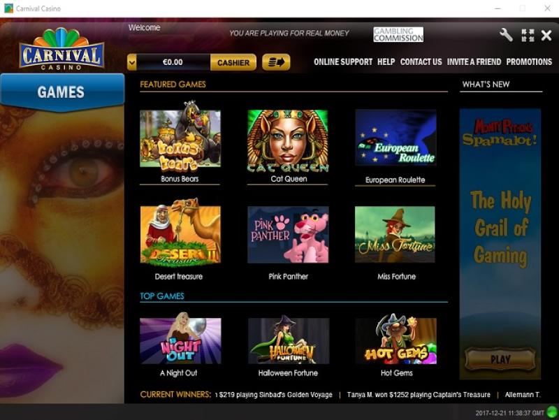Carnival 赌场由 Playtech游戏软件提供支持。