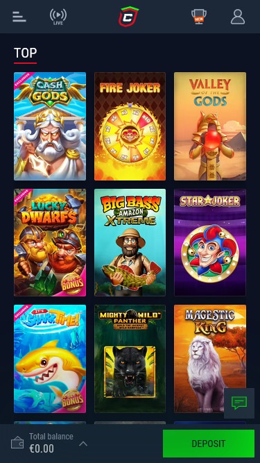 正如我们之前提到的,这个网站界面友好,结构合理。所有游戏都分为以下类别:热门、新游戏、热门、独家、老虎机、真人娱乐场、累积奖金、桌面游戏和所有游戏。
