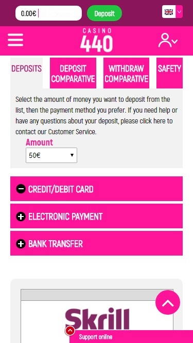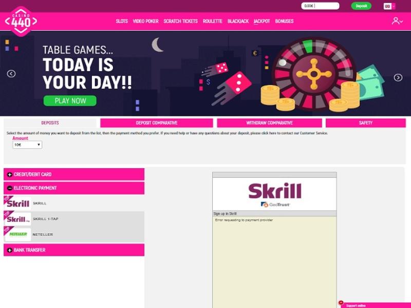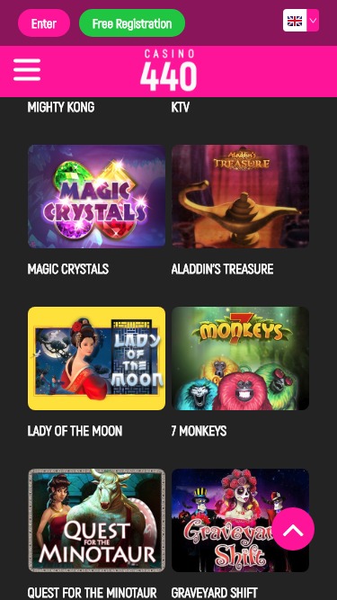 Casino 440 由 Microgaming, Genesis Gaming, Pragmatic Play, Games Global, NextGen and Inteplay提供支持,并通过网页平台提供游戏。移动网站也支持随时随地畅玩。