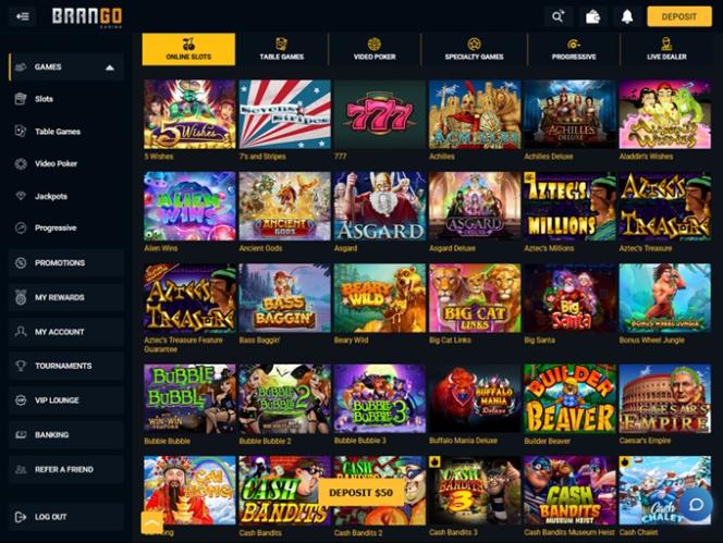Casino Brango 由 Real Time Gaming, Visionary iGaming and Spinlogic Gaming提供支持,其赌场游戏通过基于网页的即时游戏平台提供,该平台可直接通过您的网络浏览器加载,无需下载繁琐的软件。可惜的是,Nuworks 尚未构建移动平台,因此您无法在任何小屏幕设备上畅玩。