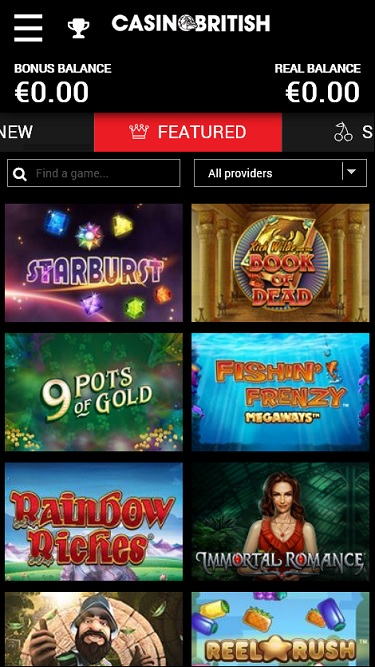 Casino British 由 Microgaming, Net Entertainment, BetSoft, 1x2gaming, Barcrest, Big Time Gaming, ELK Studios, Evolution Gaming, EYECON, Genesis Gaming, Habanero Systems, lightningboxgames, Play'n GO, playson, Quickspin, Rabcat, Rival, Thunderkick, Vivo Gaming, Wazdan, Booming Games, BetConstruct, Pragmatic Play, Nolimit City, LuckyStreak, Spinomenal, Skillzzgaming, Fugaso, Fantasma Games, Revolver Gaming, Triple Edge Studios, Evoplay, Stormcraft Studios, Switch Studios, All41 Studios, TVBet, Gameburger Studios, Pulse 8 Studios, Neon Valley Studios, Super Spade Games, Shuffle Master, SpinPlay Games, Games Global, 2by2 Gaming, Blueprint Gaming, Games Warehouse, NextGen, Tom Horn Gaming, WMS, Genii, Red7Mobile, CORE Gaming, Scientific Games, Iron Dog Studio, Foxium, Betdigital, Just For The Win, PearFiction Studios, Slingshot Studios, Fortune Factory Studios, Gamevy, Crazy Tooth Studio, Alchemy Gaming, Gold Coin Studios and Half Pixel Studios提供支持,其游戏通过即时游戏的网页平台提供。这意味着玩家可以通过网页浏览器加载赌场游戏,而无需通过繁琐的下载软件。Casino British 还提供移动游戏,兼容智能手机和平板电脑。Baccarat
