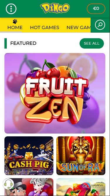 Casino Dingo 由 Microgaming, BetSoft, 1x2gaming, Big Time Gaming, ELK Studios, Evolution Gaming, Ezugi, Habanero Systems, playson, Rabcat, Rival, SOFTSWISS, Thunderkick, Vivo Gaming, Yggdrasil, Wazdan, Booming Games, PlayPearls, BetConstruct, Pragmatic Play, Nolimit City, Red Tiger Gaming, Booongo, LuckyStreak, Spinomenal, Felix Gaming, Skillzzgaming, Fugaso, Kalamba, Revolver Gaming, Nucleus Gaming, Triple Edge Studios, BGAMING, Northern Lights Gaming, Evoplay, Stormcraft Studios, Switch Studios, SA Gaming, All41 Studios, TVBet, Gameburger Studios, Pulse 8 Studios, Neon Valley Studios, Swintt, Super Spade Games, TrueLab Games, SpinPlay Games, Real Dealer Studios, Holle Games, Caleta Gaming, Games Global, Blueprint Gaming, GameScale, Mr Slotty, Reel Time Gaming, betiXon, Iron Dog Studio, Old Skool Studios, Foxium, Just For The Win, Reflex Gaming, PearFiction Studios, Wild Streak Gaming, Slingshot Studios, Fortune Factory Studios, RubyPlay, 4ThePlayer, AvatarUX, ReelPlay, Alchemy Gaming, Black Pudding Games, Snowborn Games, Boomerang Studios, SimplePlay, Bang Bang Games, Half Pixel Studios, Dragon Gaming, Peter And Sons, Eurostar Studios and Aurum Signature Studios提供支持,其游戏通过网页即时游戏平台提供,可直接通过您的网络浏览器加载。与其他一些竞争对手相比,该赌场的游戏种类较少,但质量尚可。此外,还提供移动端游戏,让玩家可以在智能手机或平板电脑上畅玩游戏。
