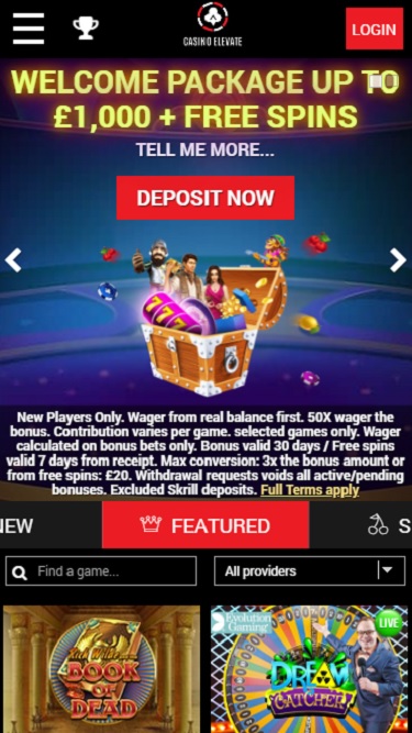 Casino Elevate 与提供在线赌场软件解决方案的知名公司合作。截至撰写本文时,该运营商已提供近 4000 款由 Evolution Gaming、iBetSoft、NetEnt 等众多开发商开发的赌场游戏。