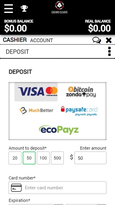 Casino Elevate 紧跟潮流,全面支持移动端博彩,深受在线赌场玩家的喜爱。该赌场平台经过交叉优化,无论您使用哪种设备(移动设备还是桌面设备),所有内容都能完美呈现。