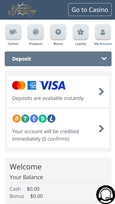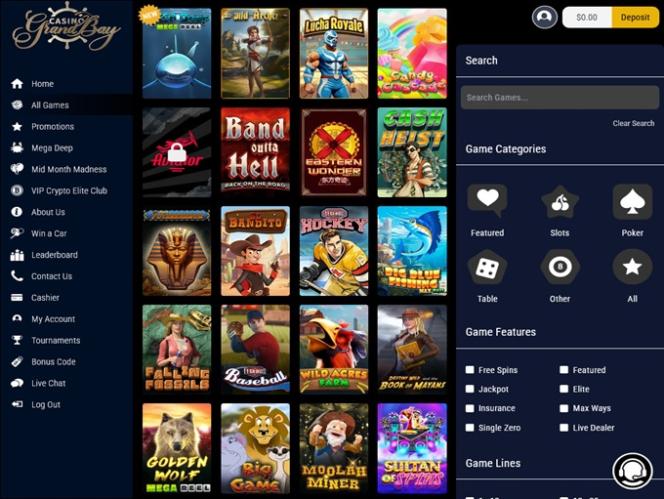Casino Grand Bay 由 BetSoft, Evolution Gaming, Rival, Saucify and Genii提供支持,玩家可以通过可下载的软件以及即时播放网络模型访问游戏。