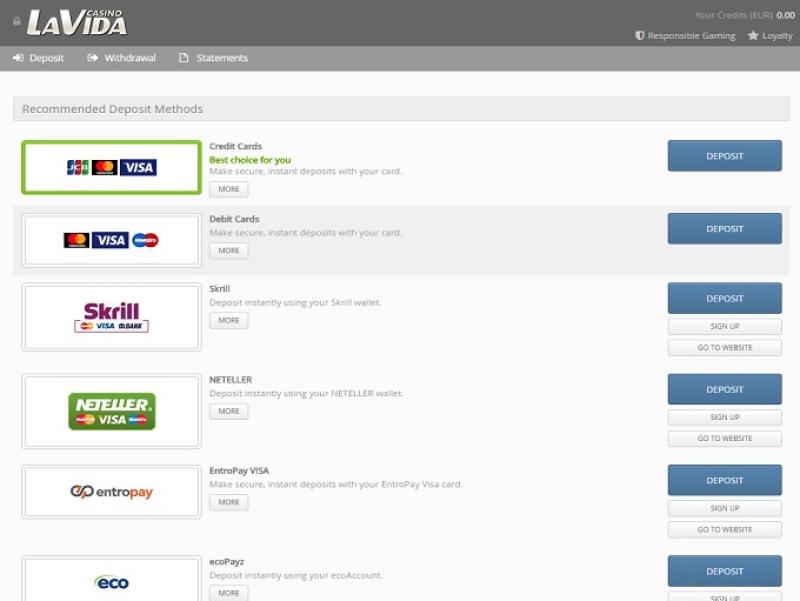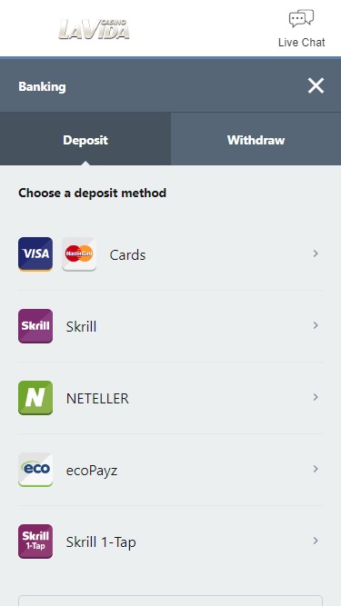 Casino La Vida 由 Microgaming, Evolution Gaming and Games Global提供支持,提供数百款游戏,涵盖老虎机、桌面游戏和视频扑克。您可以通过网页平台和可下载的软件访问赌场。此外,赌场还提供移动网站,方便希望通过智能手机和平板电脑进行游戏的玩家。