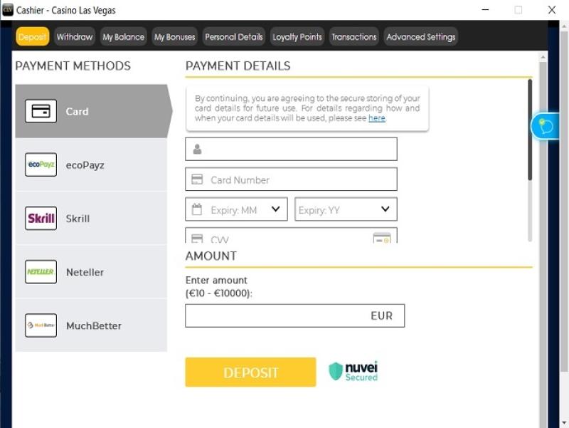 拉斯维加斯赌场拥有超过 200 种 Playtech, 1x2gaming, Evolution Gaming, EYECON, Quickspin, Ash Gaming and Rarestone Gaming游戏,并为玩家提供下载版或即时播放两种游戏方式。