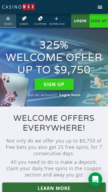 Casino Max 是一个在线博彩网站,于 2017 年上线,由新成立的博彩集团 Legend Affiliates 运营。该网站允许美国玩家使用,并使用 RTG 软件,这可能会让您觉得它只是一家普通的博彩公司。但事实并非如此,因为该网站支付速度快、奖金条款优厚,并且游戏库丰富。