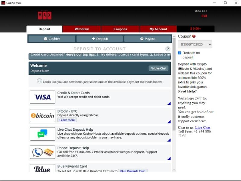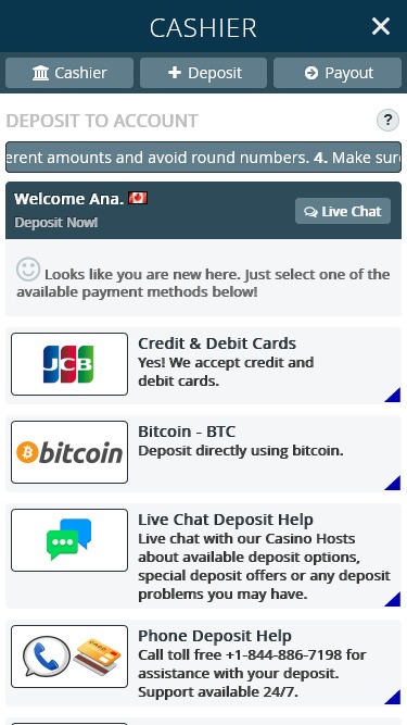 这家赌场的银行系统还不错,尽管它受到任何对美国友好的赌场都会面临的限制。存款和取款可以通过电子支票、银行转账、万事达卡、Visa、Skrill、Neteller 和 ecoPayz 进行。奖金的待处理时间为 24-48 小时,之后的 3-5 个工作日内支付完成。每周奖金提现限额为 4,000 美元。