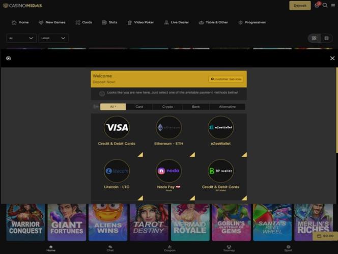 Casino Midas 是一个在线博彩网站,成立于 2012 年,由 Midas Entertainment BV 所有并运营。该网站以提供 RTG 软件和出色的多语言支持而闻名,但提款限额较低,并声称提供真人荷官游戏,但实际上并没有。