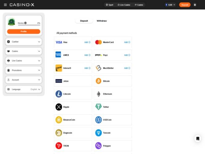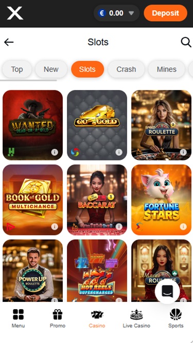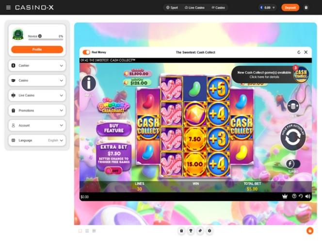 Casino-X 由 Microgaming, Net Entertainment, Playtech, BetSoft, Amatic Industries, Big Time Gaming, ELK Studios, Evolution Gaming, EYECON, Ezugi, Genesis Gaming, Habanero Systems, iSoftBet, Novomatic, Oryx, Play'n GO, playson, Quickspin, Relax Gaming, Thunderkick, Yggdrasil, Endorphina, Wazdan, Booming Games, Pragmatic Play, Nolimit City, Red Tiger Gaming, Booongo, Spinomenal, Belatra Games, Fantasma Games, Kalamba, Spin Games, Platipus Gaming, Skywind, Triple Edge Studios, BGAMING, Northern Lights Gaming, Stormcraft Studios, OneTouch, Electric Elephant Games, Pocket Games Soft, Bulletproof Games, All41 Studios, Gluck Games, Mascot Gaming, Gameburger Studios, Pulse 8 Studios, Slot Factory, Neon Valley Studios, Radi8 Games, Woohoo Games, SpinPlay Games, HungryBear Gaming, Qora Games, SmartSoft Gaming, KA Gaming, Blue Guru Games, Lady Luck Games, Buck Stakes Entertainment, Caleta Gaming, Elysium Studios, Games Global, Amusnet Interactive, Ash Gaming, bluberi, Greentube, Igrosoft, Tom Horn Gaming, Gamomat, Foxium, Just For The Win, Reflex Gaming, Storm Gaming Technology, PearFiction Studios, Wild Streak Gaming, Slingshot Studios, Fortune Factory Studios, Jade Rabbit Gaming, RubyPlay, 4ThePlayer, AvatarUX, Gamevy, ReelPlay, Rarestone Gaming, Snowborn Games, Boomerang Studios, Hacksaw Gaming, Max Win Gaming, Bang Bang Games, Gamzix, Slotmill, Peter And Sons, Onlyplay, Gamebeat, RAW iGaming, Bombay Live, Aviatrix, Winfinity, 3 Oaks Gaming, Spribe, Print Studios, Gaming Corps, Four Leaf Gaming, Nailed It! Games, Atomic Slot Lab, Reel Kingdom, Givme Games, Indigo Magic, Popiplay, Live88, Galaxsys, Kitsune Studios, InOut Games, Boldplay, Turbo Games and Penguin King提供支持,其游戏通过网页平台提供。此外,还为希望通过智能手机和平板电脑玩游戏的用户提供移动网站。