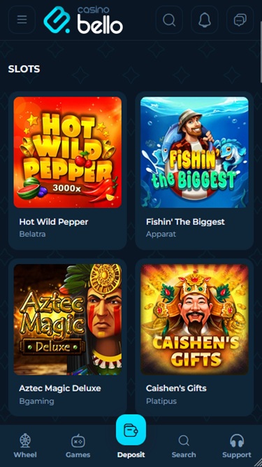 如果您喜欢随时随地玩游戏,CasinoBello 一定会让您欣喜,因为它已针对所有便携式设备进行了全面优化。对于喜欢在桌面设备上玩游戏的玩家,游戏体验依然流畅流畅,令人愉悦。赌场的响应式设计和优化确保游戏快速加载——前提是您拥有稳定的网络连接。