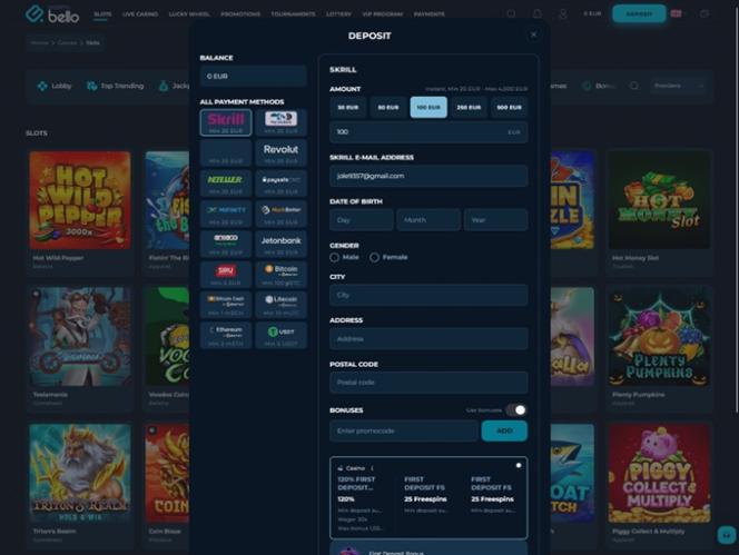 除了入门优惠外,CasinoBello 还为经常进行真钱投注的玩家提供更多激动人心的促销活动。对于高额玩家,我们将提供独家奖金,与其他促销优惠一样,需使用奖金代码激活。此优惠在玩家领取所有迎新奖金后生效,每月可兑换一次。玩家还可以享受真人娱乐场现金返还、幸运转盘等更多优惠。