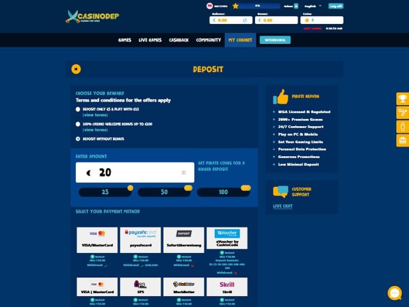 CasinoDep 为我们提供了我们非常喜欢的会员计划。如果您决定加入会员计划,您将可以玩一些您喜欢的游戏并赚取金币,之后您可以用这些金币兑换现金。