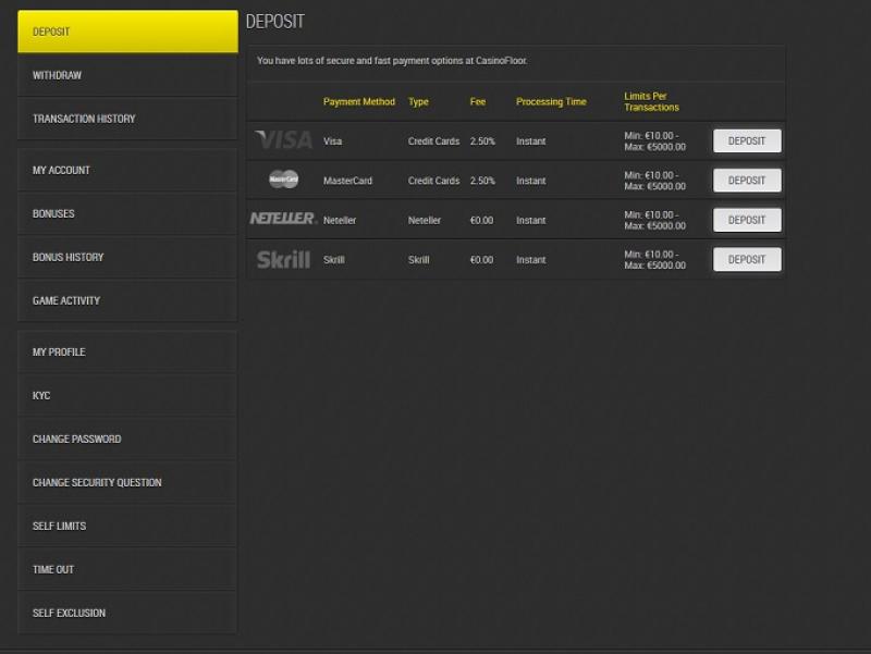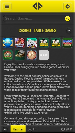 CasinoFloor 由 Microgaming, Net Entertainment, BetSoft, Big Time Gaming, ELK Studios, Genesis Gaming, lightningboxgames, Play'n GO, Quickspin, Rabcat, Thunderkick, Games Global, 2by2 Gaming, bluberi, EveryMatrix, Games Warehouse, Leander Games, NextGen, NYX Interactive, omi-gaming and Geco Gaming提供支持,并通过基于网页的平台提供。该赌场还拥有移动网站,为智能手机和平板电脑提供丰富的游戏选择。Baccarat