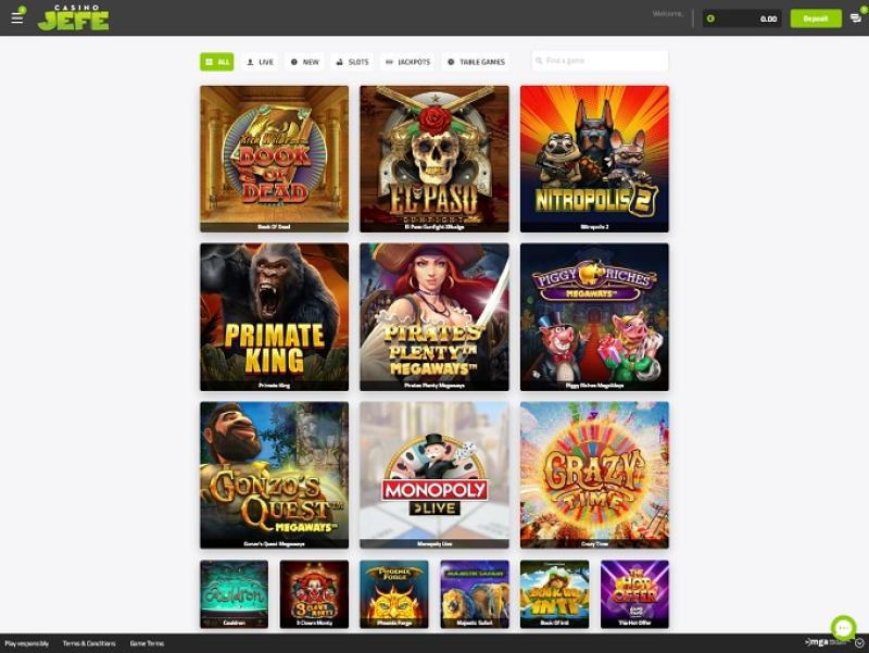 CasinoJEFE 是一个在线博彩网站,是 Lucky Dino 赌场的姊妹网站。CasinoJEFE 成立于 2015 年,因其即时处理电子钱包提款和注册账户后立即充值的奖励计价器而广受玩家欢迎。赌场资讯